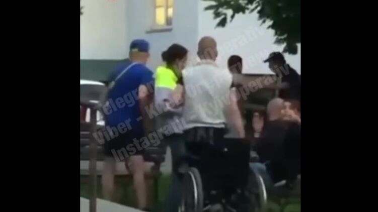 В частности, очевидцы сняли на телефон, как во время разборок в городе Вишневое, что в Киевской области, мужчина встал с инвалидной коляски и начал помогать товарищам.