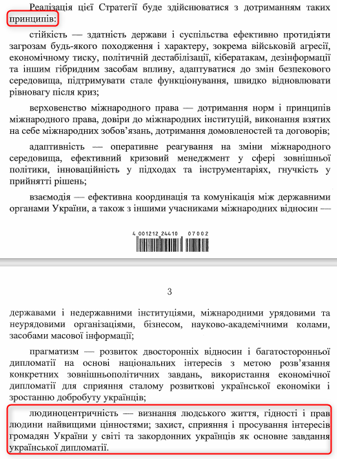 Точно так же с принципами внешней политики. "Человекоцентричность" там стоит на самом последнем месте. Выше нее поставили "Прагматизм".