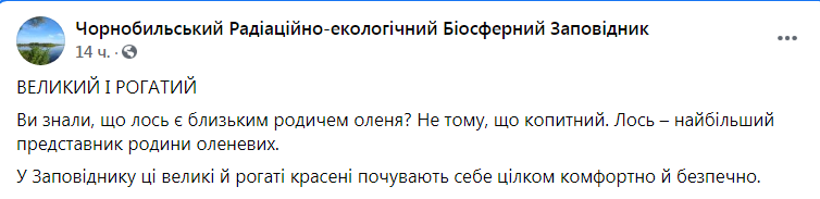 В Чернобыльском радиационно-экологическом биосферном заповеднике показали фото в дикой природе зоны отчуждения ЧАЭС лося.