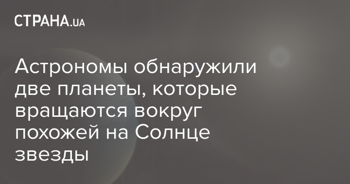 Астрономы обнаружили две планеты, которые вращаются вокруг похожей на Солнце звезды
