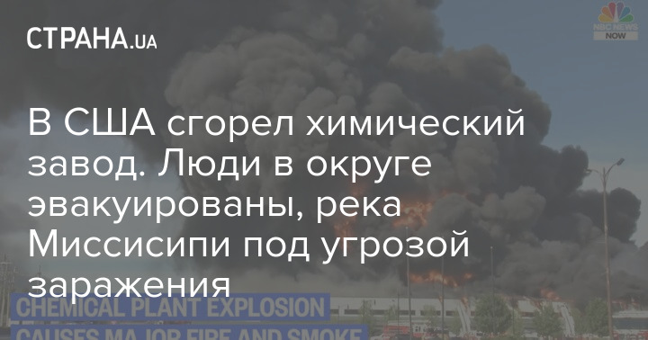 В США сгорел химический завод. Люди в округе эвакуированы, река Миссисипи под угрозой заражения