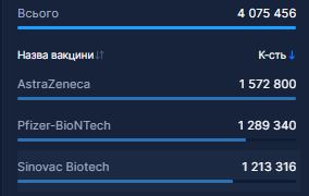 Количество вакцин, которые получила Украина. Данные с сайта СНБО