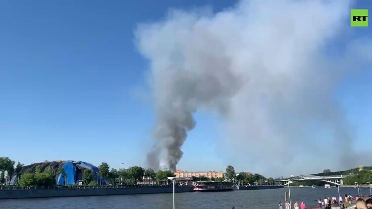 В субботу, 19 июня, в центре Москве на Лужнецкой набережной загорелся склад, на котором хранится пиротехника. Огонь перекинулся на соседнее здание, площадь пожара достигла 150 квадратных метров.