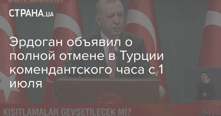 "Сегодня на заседании кабинета министров мы приняли решение: с 1 июля комендантский час полностью отменяется. Госучреждения возвращаются к обычным часам работы. Возрастные ограничения на пользование общественным транспортом отменяются", - заявил Эрдоган.