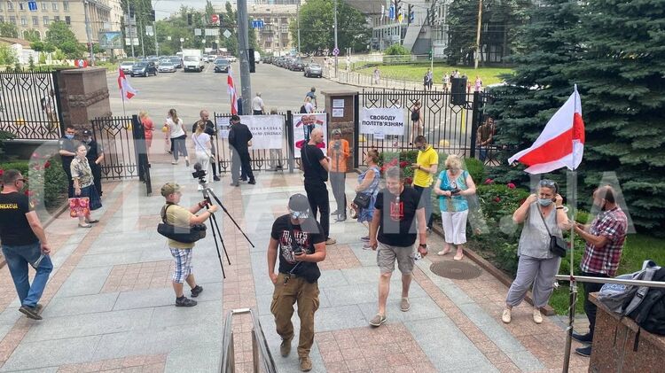 Заседание запланировано на 13:45. На суд, поддержать Семенченко пришли сторонники белорусской оппозиции и вывесили символику в виде флагов и плакаты.