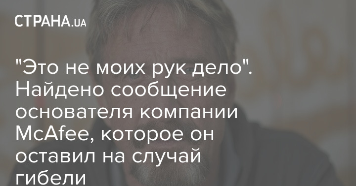 "Это не моих рук дело". Найдено сообщение основателя компании McAfee, которое он оставил на случай гибели
