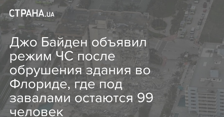 Джо Байден объявил режим ЧС после обрушения здания во Флориде, где под завалами остаются 99 человек