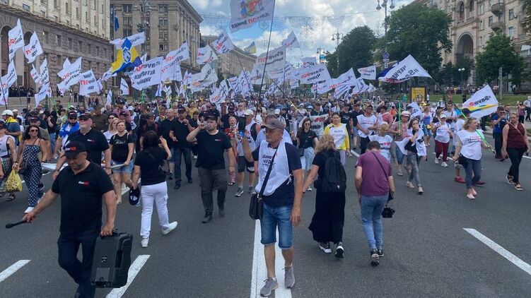 ФОПы хотели пройти маршем к Офису президента, а затем к Верховной Раде, но правоохранители начали их блокировать из-за того, что участники акции хотели пронести с собой гроб и ритуальные венки.
