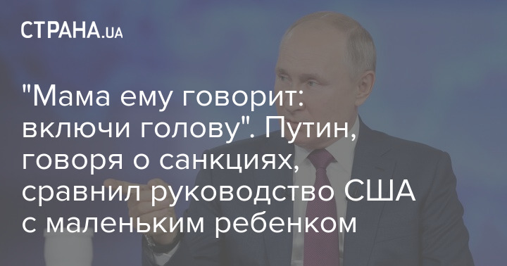 "В семье близких мне людей растут дети. Маленький ребенок еще говорить не умеет. Он нашкодил. Мама ему говорит: включи голову. Он как сделал: пальчиком по голове и сказал: "Памм". Молодец! Условные мамы и папы в Штатах, уважаемые аналитики и ученые дают рекомендации своему политическому руководству в широком смысле. Им говорят: период, когда мы были гегемонами, период однополярного мира прошел, и вы должны исходить из того, что мир меняется быстро. Каким бы санкциями Россию ни пугали, она все равно развивается, ее экономический суверенитет повышается, оборонная способность во многих параметрах превзошла многие страны мира", - сказал российский лидер.