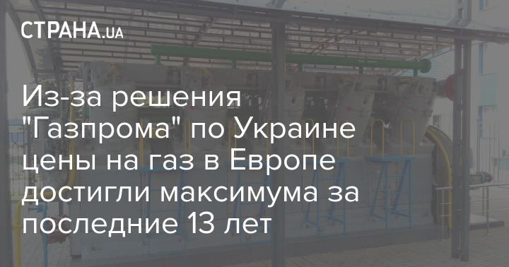 Из-за решения "Газпрома" по Украине цены на газ в Европе достигли максимума за последние 13 лет