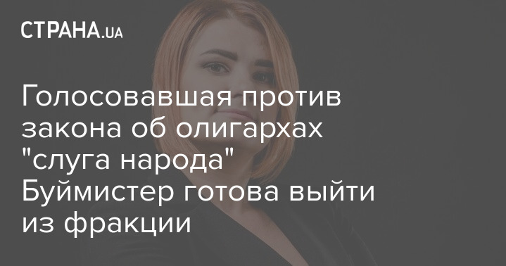 Депутат от "Слуги народа" Людмила Буймистер была единственной во фракции, кто проголосовал против законопроекта об олигархах. Учитывая, что ранее Давид Арахамия пригрозил исключением из фракции тех, кто не поддержит этот закон, пошли слухи, что Буймистер покинет ряды СН.