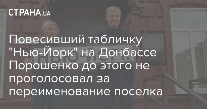 Повесивший табличку "Нью-Йорк" на Донбассе Порошенко до этого не проголосовал за переименование поселка