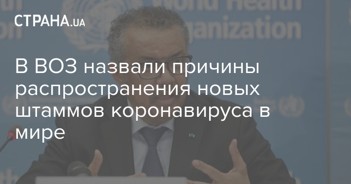 Генеральный директор Всемирной организации здравоохранения (ВОЗ) Тедрос Аданом Гебрейесус заявил, что новые опасные штаммы коронавируса опережают вакцинацию, из-за неравного распределения препаратов в мире.