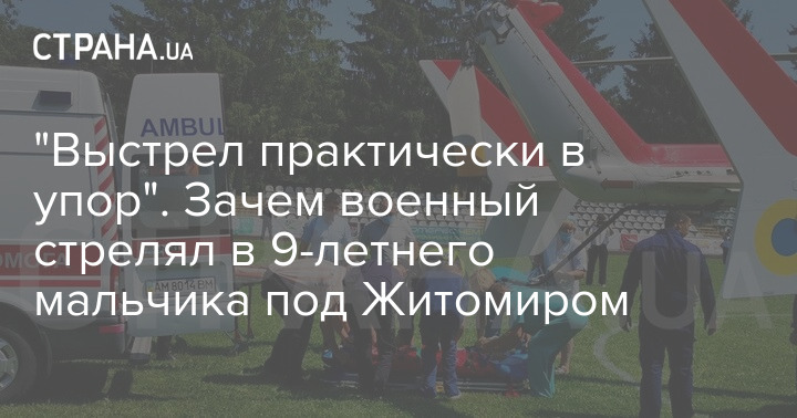 В Новоград-Волынском Житомирской области нетрезвый военный, приехавший в гости из Киева, тяжело ранил 9-летнего ребенка. Пуля прошила спину и вышла через живот. После этого ребенок попал в реанимацию. Для того, чтобы доставить его в столицу, задействовали вертолет. Стрелявшего задержали.