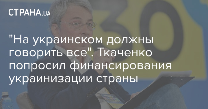 Также он заявил, что "продвигать украинский язык невозможно без финансов". При этом, по его словам, речь идет не только о внедрении моды на общение на государственном языке, но и о конкретной финансовой поддержке, "чтобы украинский язык действительно был доминирующим". По словам Ткаченко, финансирование позволит перезапустить систему, ориентированную на украинский рынок, и поможет увеличить "в разы количество украиноязычного продукта: фильмов, книг, гидов в музеях".
