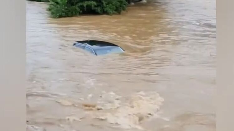 Воды было настолько много, что машина могла полностью в ней утонуть. Кадр с видо