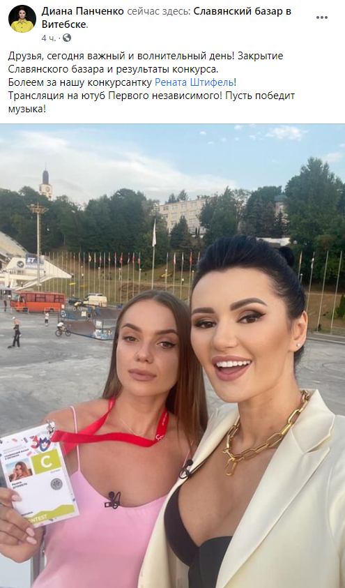 Позже телеведущая опубликовала фото с украинской конкурсанткой Ренатой Штифель, которую поддерживала в конкурсе.