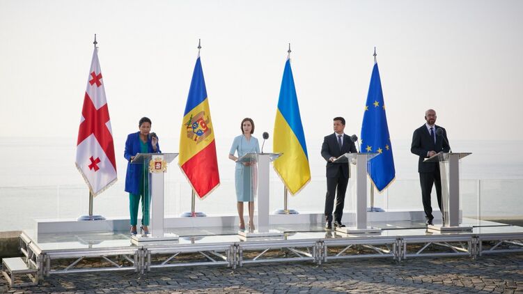 "Предоставление европейской перспективы трем ассоциированным партнерам станет мощным стимулом и даст толчок для еще более глубоких и более широких реформ. В этом контексте мы напоминаем, что в соответствии со статьей 49 Договора о ЕС Грузия, Республика Молдова и Украина как европейские государства, которые уважают европейские ценности и преданы их продвижению, могут подать заявки на вступление в Европейский союз", - написано в декларации.