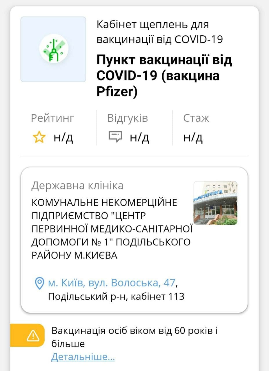 И нужно следить - у каждого кабинета вакцинации есть указание возраста. Например, на Подоле вакцинируют Pfizer, но только тех, кто старше 60-ти.