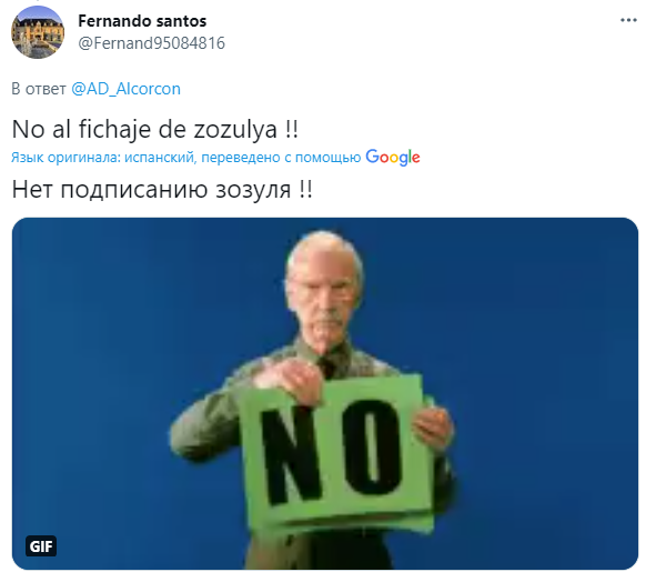 По информации источника издания AS, причиной замедления переговоров между Зозулей и руководством "Алькоркона" стала реакция болельщиков клуба в социальных сетях на слухи о возможном подписании сделки с украинским форвардом.