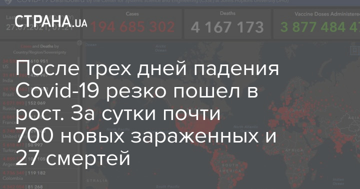 После трех дней падения Covid-19 резко пошел в рост. За сутки почти 700 новых зараженных и 27 смертей