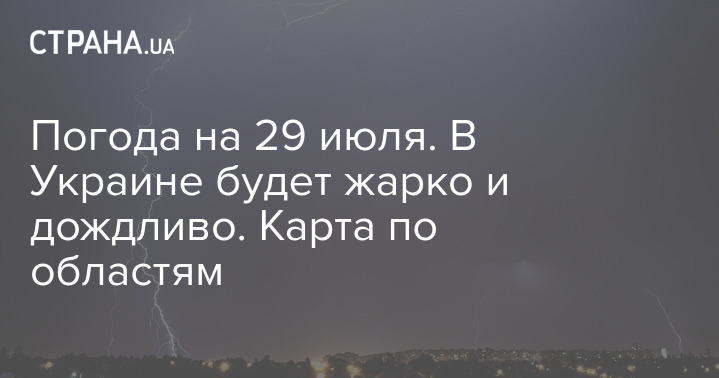 В четверг, 29 июля, в Украине ожидается жаркая и дождливая погода. Только югу страны удастся избежать осадков.
