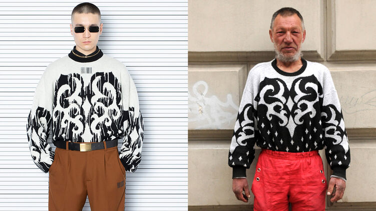 Французский модный бренд одежды Vetements для создания образов лукбука VTMNTS 2022 вдохновился нарядами бездомного мужчины из Львова, а в некоторых случаях и практически полностью их скопировал.