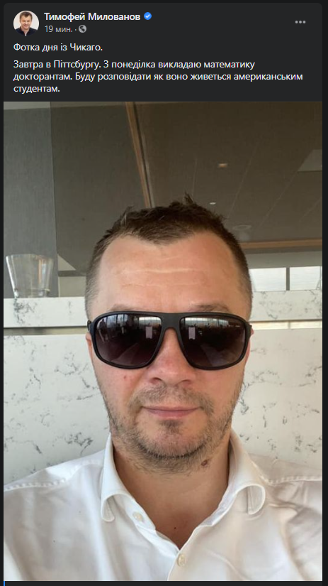 После удара от Данилюка Милованов выложил фото в темных очках из Чикаго