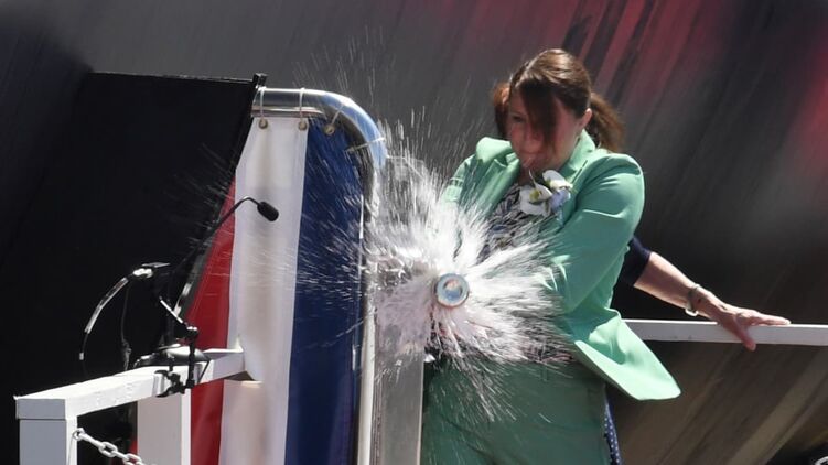 Молодая женщина дважды ударила бутылкой по борту подлодки, но та не разбилась. Справиться с миссией у Сары получилось только с третьей попытки - после инструктажа военных.