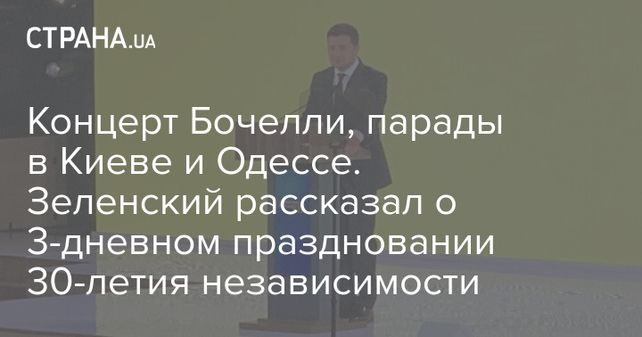 Концерт Бочелли, парады в Киеве и Одессе. Зеленский рассказал о 3-дневном праздновании 30-летия независимости