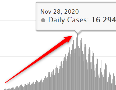 Хотя введут ли его - пока вопрос. Несмотря на то что прошлой осенью рост был перманентный (см. картинку выше), первые ограничения ввели только в конце ноября, когда устроили "локдаун выходного дня".