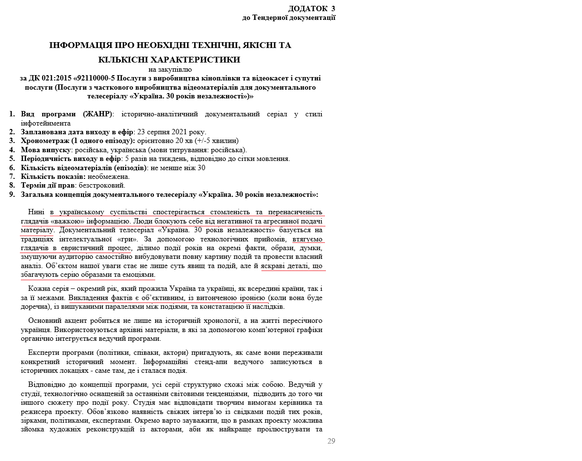 В техническом задании на тендер госканал сообщил, что "в настоящее время в украинском обществе наблюдается усталость и перенасыщенность зрителей "тяжелой" информацией. Люди блокируют себя от негативной и агрессивной подачи материала".