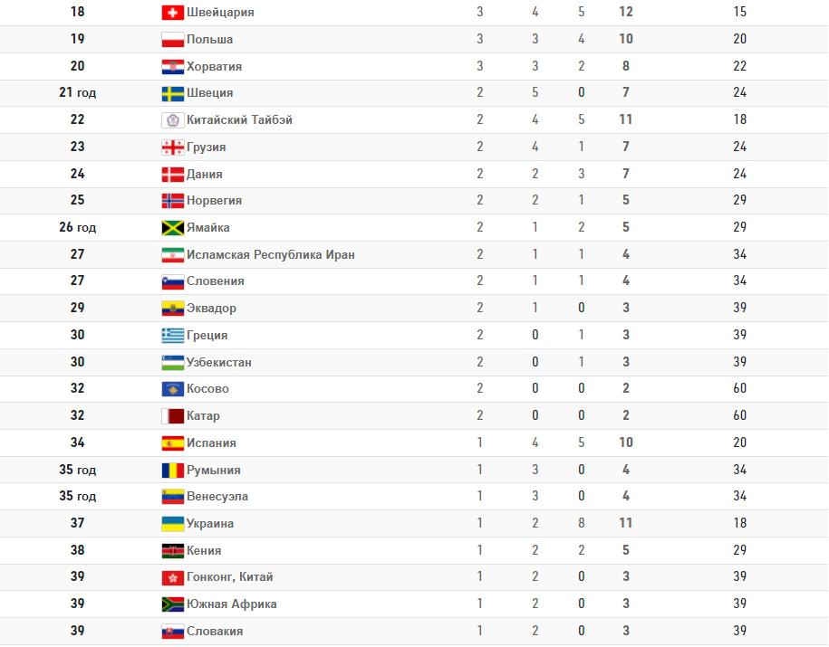 Медальный зачет Олимпиады. Украина поднялась сразу на 24 позиции и повторила достижение Рио-2016