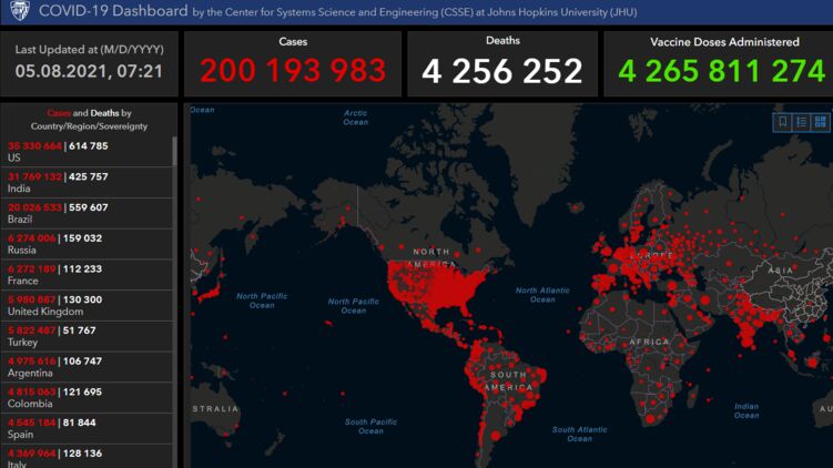 С этим можно согласиться, учитывая тот факт, что на Земле, по данным университета Хопкинска (отслеживает ситуацию на планете в режиме онлайн с начала пандемии - Ред.), общее число заражений превысило планку в 200 миллионов человек.
