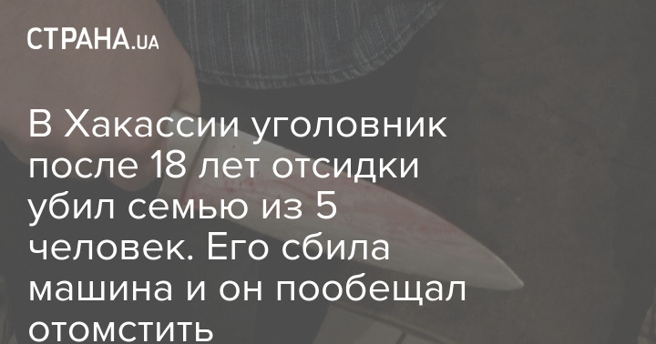 В Хакасии (субъект РФ - Ред.) мужчина, отсидевший 18 лет в тюрьме за убийство, вышел на свободу и зарезал семью из пяти человек.