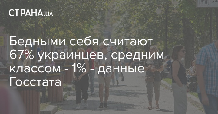 Бедными себя считают 67% украинцев, средним классом - 1% - данные Госстата