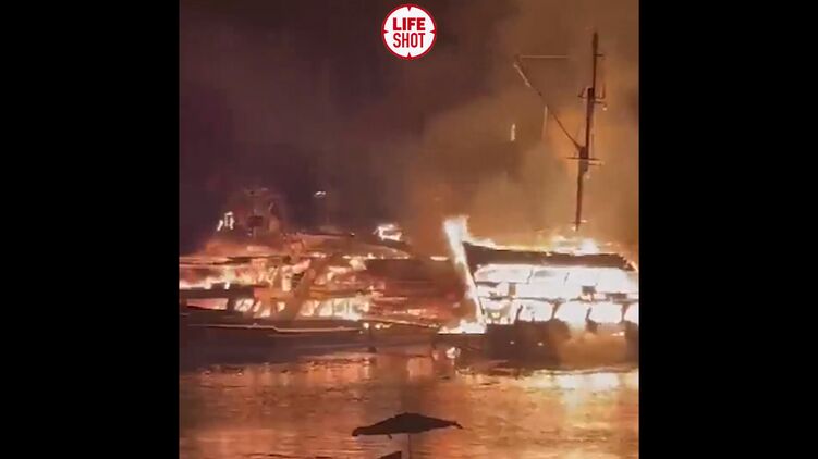 Пожар на кораблях в Аланье. Скриншот телеграм-канала