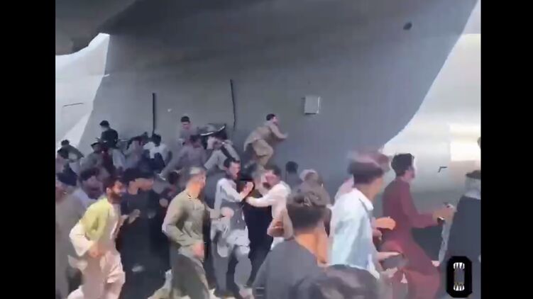 В соцсетях появился видеоролик, как афганцы привязали себя к военно-транспортному самолету США в аэропорту Кабула. В итоге после взлета они упали на крыши жилых домов и разбились