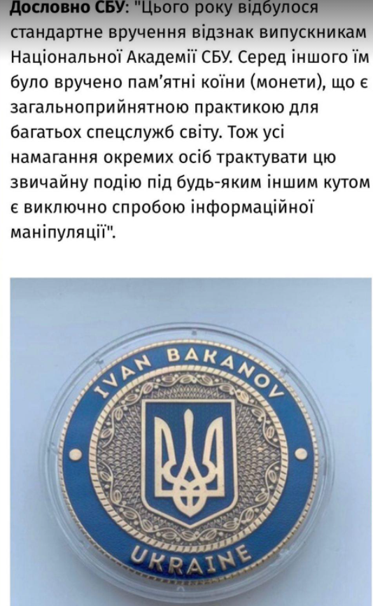 Кроме того, издание пишет, что медаль не могли произвести за бюджетные деньги, так как она не является ведомственной наградой и не входит список четырех регламентированных наград СБУ.