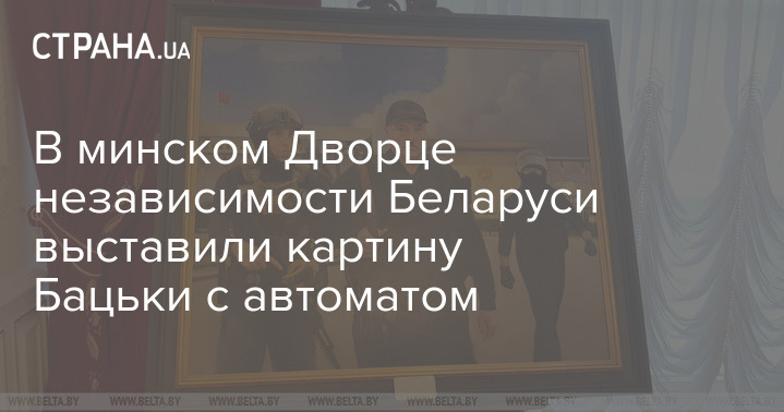 Во Дворце независимости Беларуси появилась картина изображающая вооруженных президента Лукашенко с сыном. Такое известное фото сделали в ходе разгара акций протеста в Минске, передает "БелТА".