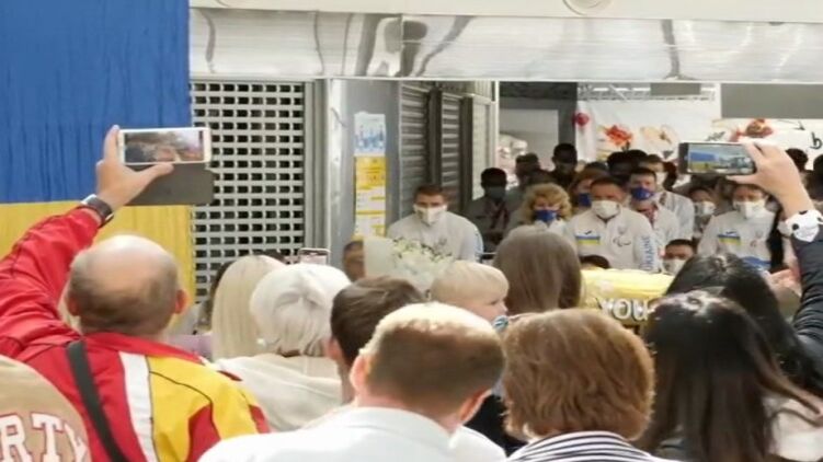 В аэропорту украинских спортсменов встречали родственники, близкие люди, а также представители СМИ.