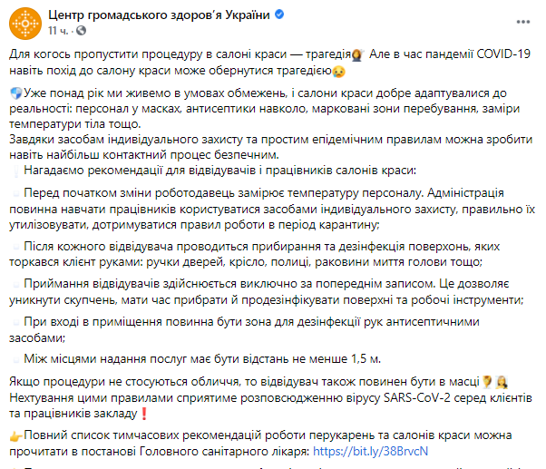 Во время пандемии COVID-19 поход в салон красоты может обернуться трагедией. Но благодаря средствам индивидуальной защиты и простым эпидемическим правилам его можно сделать безопасным. Об этом украинцев предупредили медики Центра общественного здоровья при Минздраве Украины.