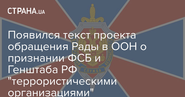 На сайте Верховной Рады появился текст проекта постановления об обращении нардепов в Совет безопасности ООН о признании Федеральной службы безопасности РФ и Главного управления Генерального штаба Вооруженных сил России "террористическими организациями".