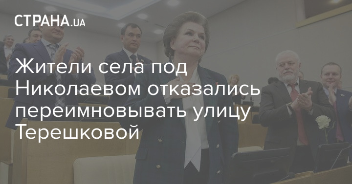 Жители села Тузла Николаевской области проголосовали против переименования улицы Валентины Терешковой. Свою позицию они объяснили тем, что улицу назвали в честь первой в мире женщины-космонавта, а не политика, голосовавшего за присоединение Крыма к России или члена ЦК КПСС.