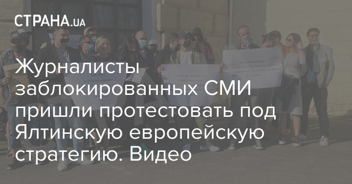 Журналисты заблокированных в Украине СМИ пришли на акцию протеста под стены Художественного арсенала, где сегодня проходит Ялтинская европейская стратегия.