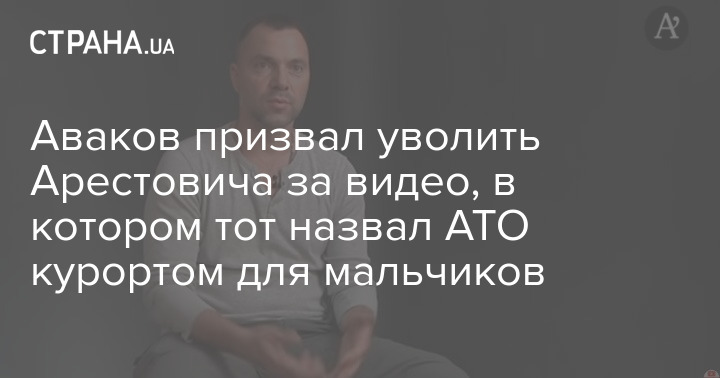 Экс-глава МВД Арсен Аваков опубликовал у себя в Фейсбук видео, на котором Алексей Арестович назвал АТО пионерлагерем и курортом для мальчиков. За это видео Аваков призвал Банковую уволить Арестовича - спикера ТКГ и советника Андрея Ермака.
