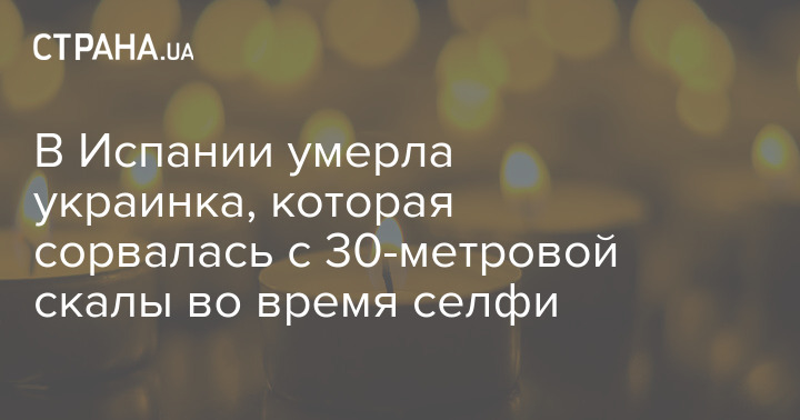 Сегодня в испанской больнице Аликанте умерла украинка, сорвавшаяся в море с высоты 30 метров во время попытки сделать селфи. Инцидент произошел 14 сентября рядом с популярной испанской достопримечательностью Кастель де Бенидорм. Девушка получила множественные серьезные травмы, спасти ее не удалось. Ей было 26 лет.