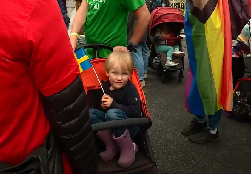Это с ним привезли ребенка на коляске, который держит шведский флаг (пост от 10:49).