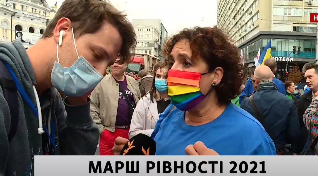 13:15 После марша киевляне вступают в споры с ЛГБТ-активистами. Одна из женщин выступила против лесбиянства.