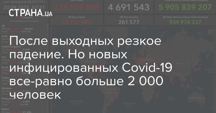 После выходных резкое падение. Но новых инфицированных Covid-19 все-равно больше 2 000 человек
